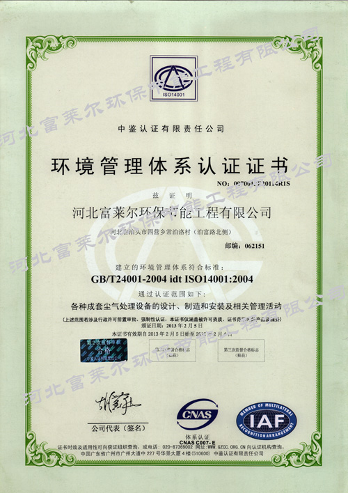 環(huán)境管理體系認(rèn)證證書(shū)